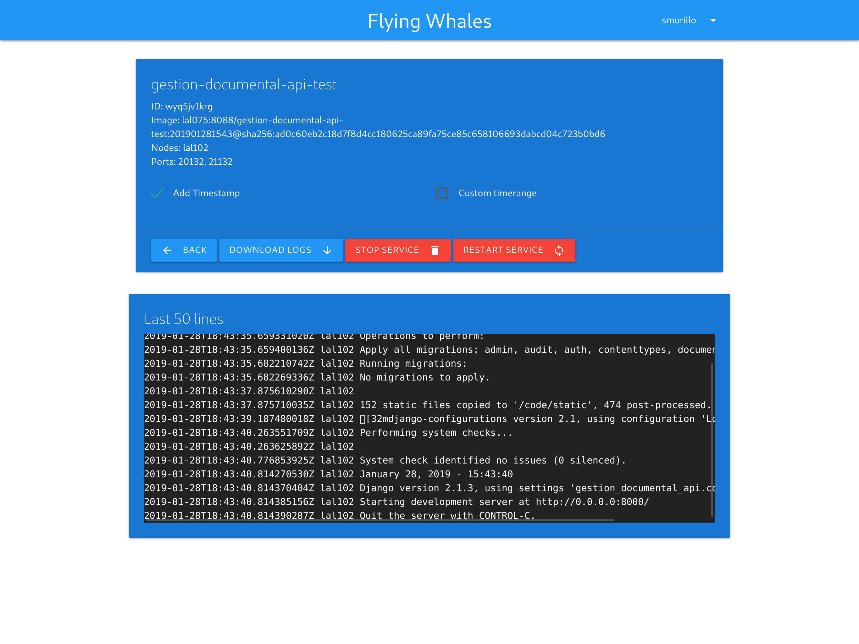 - Download the service logs starting from a certain date.
