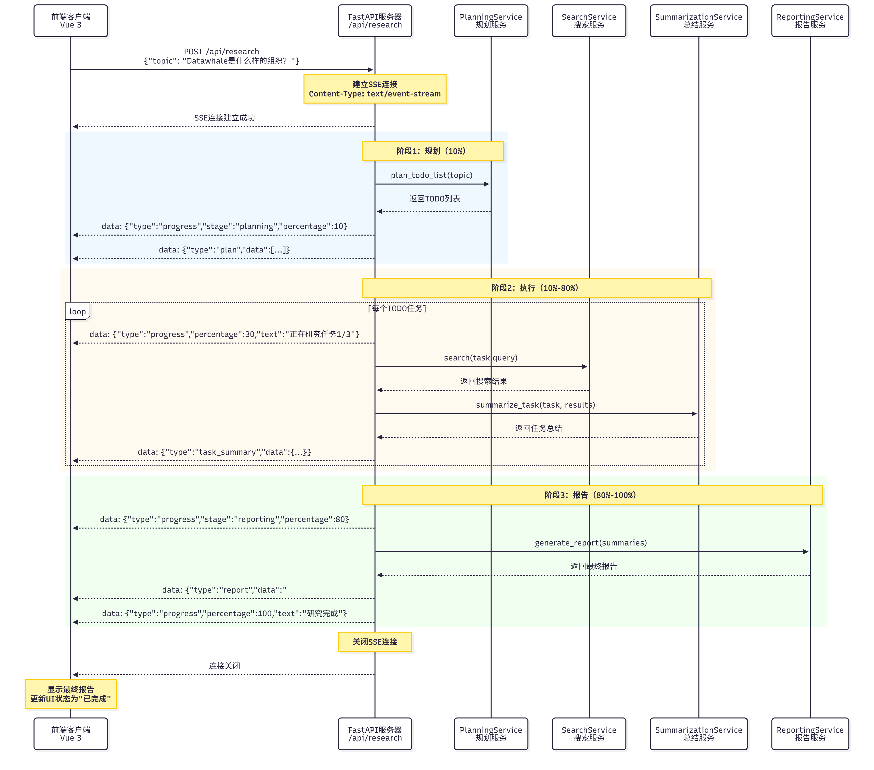 - SSE 实时进度:实时展示研究进度,用户体验良好