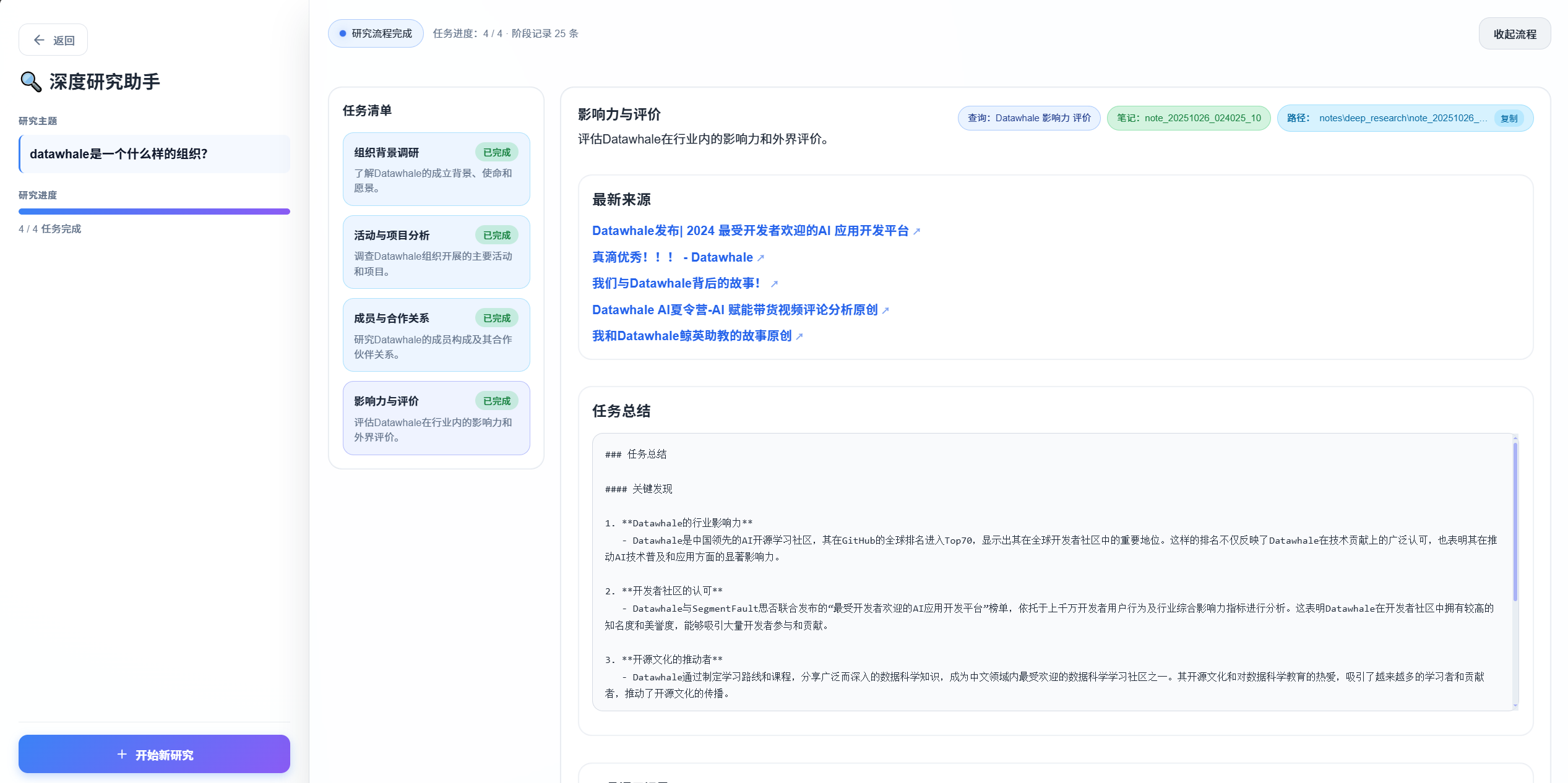 这就是深度研究助手需要解决的问题。它不仅仅是一个搜索工具,而是一个能够自主规划、执行和总结的研究助手。