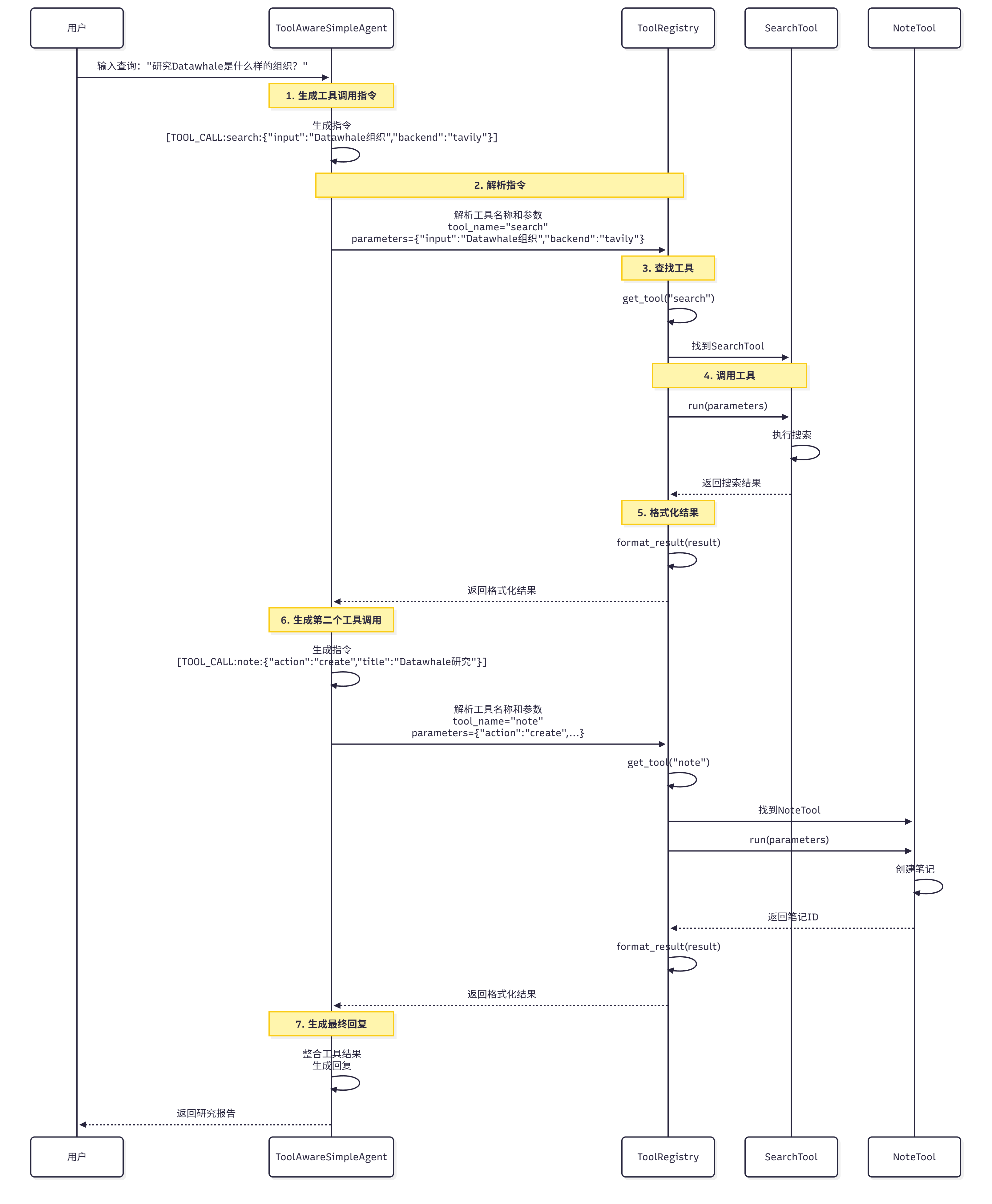 我们扩展了 HelloAgents 框架的SimpleAgent,实现了ToolAwareSimpleAgent。这个 Agent 具有工具调用监听能力,可以: