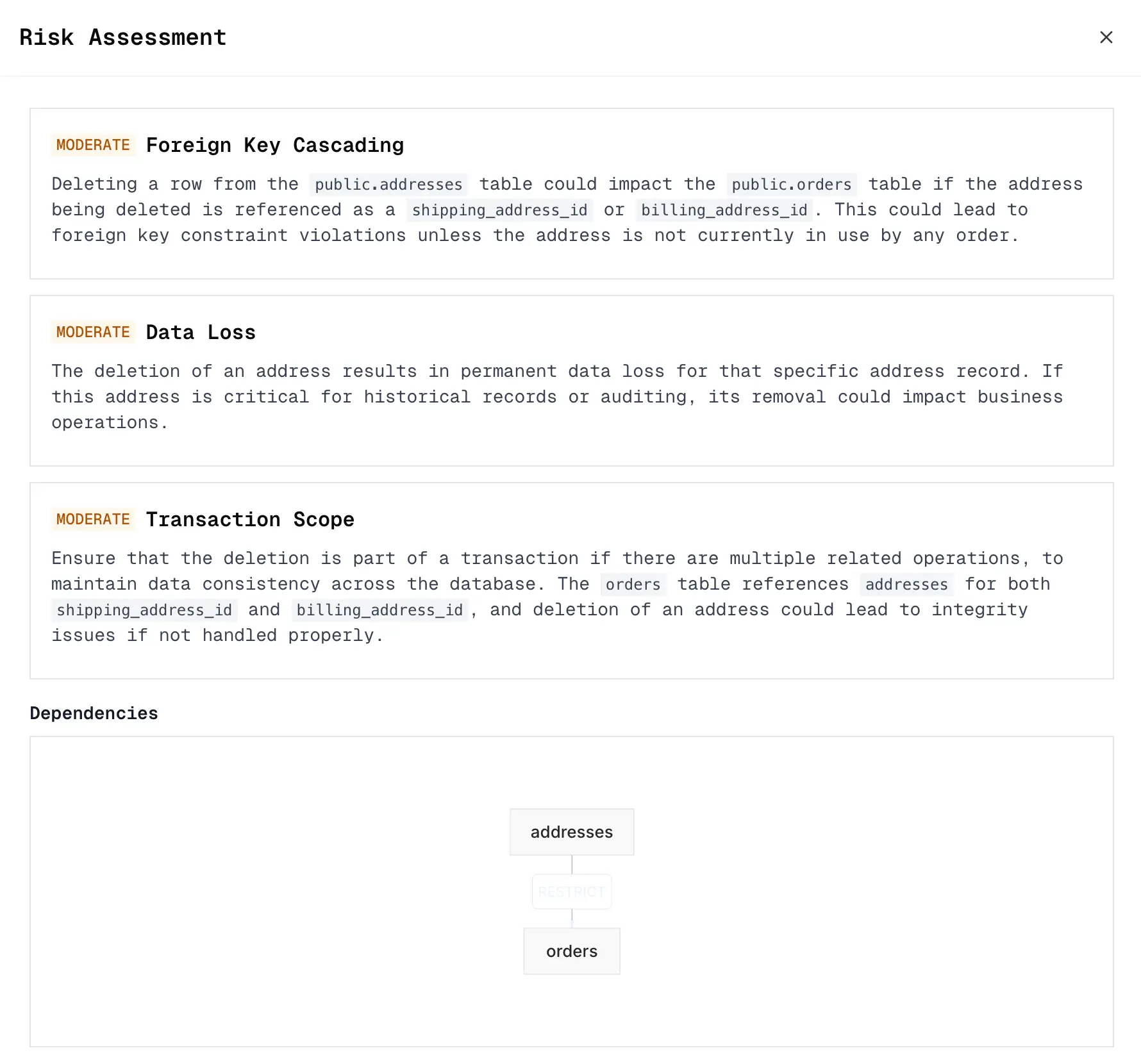 - Risk assessment — analyze staged changes for potential risks before execution